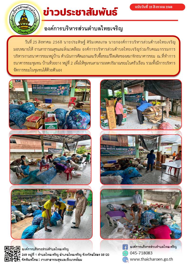 ธนาคารขยะชุมชนบ้านห้วยยาง(คัดแยกและรับซื้อขยะรีไซเคิล)