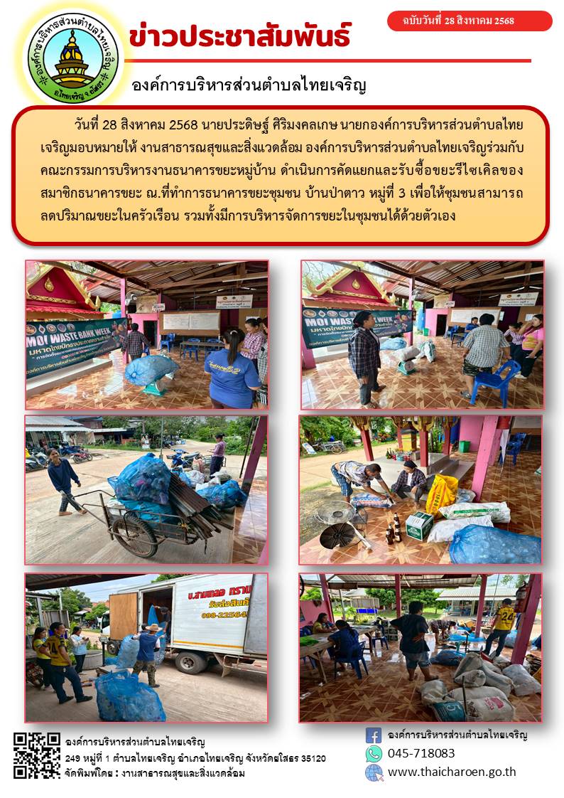 ธนาคารขยะชุมชนบ้านป่าตาว(คัดแยกและรับซื้อขยะรีไซเคิล)