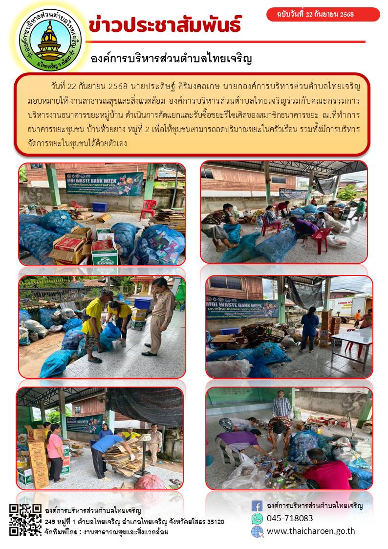 ธนาคารขยะชุมชนบ้านห้วยยาง(คัดแยกและรับซื้อขยะรีไซเคิล)